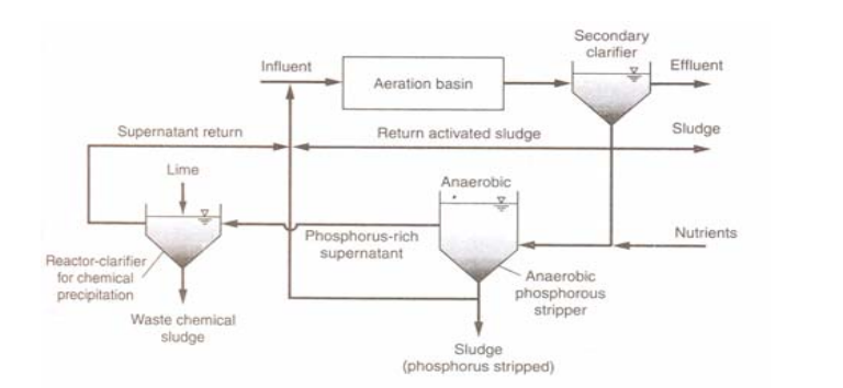 فرآیند فوستریپ در اصل یک فرآیند بی هوازی / هوازی است. شرایط بی هوازی با نگهداری طولانی RAS در تغلیظ کننده ثقلی انجام میگیرد که زمان ماند ان حدود ۸ تا ۱۲ ساعت است. فسفر رها شده معمولا با اضاف شده به پساب خروجی اولیه یا فاضلاب خام تصفیه می شود که همچنین شرایط بی هوازی را افزایش می دهد. سپس برای حذف فسفر ، سرریز حاصل از تانک زداینده بصورت شیمیایی تصفیه و RAS به طور مستقیم وارد تانک هوازی می شود. به طور معمول آهک بعنوان ماده شیمیایی برای ترسیب فسفر حاصل از سرریز تانک زداینده استفاده شده است. مقدار آهک مورد نیاز برای افزایش PH در حذف فسفر تابعی از قلیائیت فاضلاب است و به مقدار فسفر موجود بستگی ندارد . اگر آلوم و نمک های آهن جایگزین شود ، مقدار آن به محتوای فسفر وابسته است ، با وجود اینکه از تصفیه شیمیایی برای حذف فسفر استفاده میشود ، حذف فسفر در لجن دفعی بدلیل گسترش باکتری های ذخیره کننده فسفر افزایش یافته است . همانطور که در شکل نشان داده شده است ، عملکرد حذف فسفر توسط نیتریفکاسیون جلوگیری می شود.