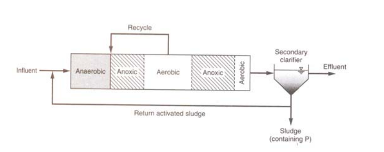 از این فرآیند میتوان برای حذف ترکیبی فسفر و نیتروژن استفاده میشود . یک سیستم پنج مرحله ای مطابق شکل هست که مرحله بی هوازی ، انوکسیک و هوازی را برای حذف فسفرف نیتروزن و کربن فرآهم می آورد . مرحله انوکسیک ثانویه برای دنیتریفکاسیون اضافی فذاهم می شود که با استفاده از نیتراتی که در مرحله هوازی بعنوان گیرنده الکترون و کربن آلی ناشی از خودتخریبی بعنوان هنده الکترون انجام می شود. مرحله هوازی نهایی برای حذف گاز نیتروژن اضافی از محلول و کاهش رهاسازی فسفر در زلال ساز نهایی می باشد ، مایع مخلوط حاصل از ناحیه هوازی اولیه به منطقه انوکسیک برگشت داده می شود. این فرآیند ۵ مرحله ای از SRT طولانی تری در حدود ۱۰ الی ۲۰ روز برخوردار است که توانایی اکسداسیون کربن افزایش می یابد .